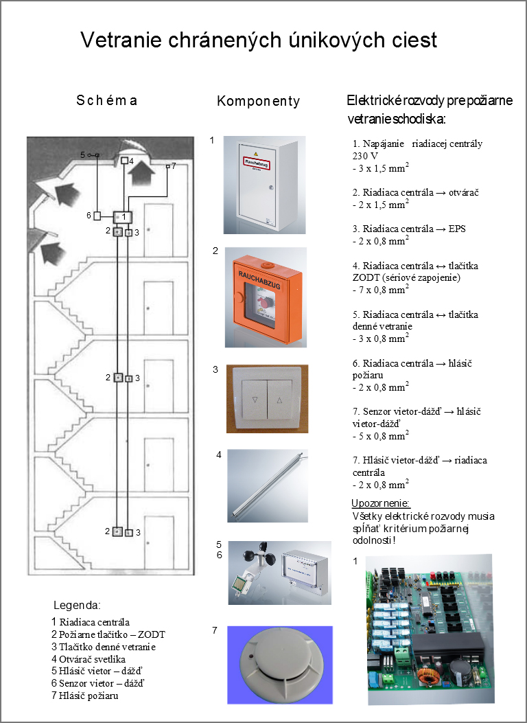 - požiarna centrála so záložným zdrojom ovládajúca otváranie/zatváranie
